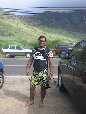 Besides surfing, they had canoe surfing. It holds 4 men ( or women) and they take off on bomb waves! Alika was asked to be in one . When these guys wipe out....it is SCARY TO WATCH!!!